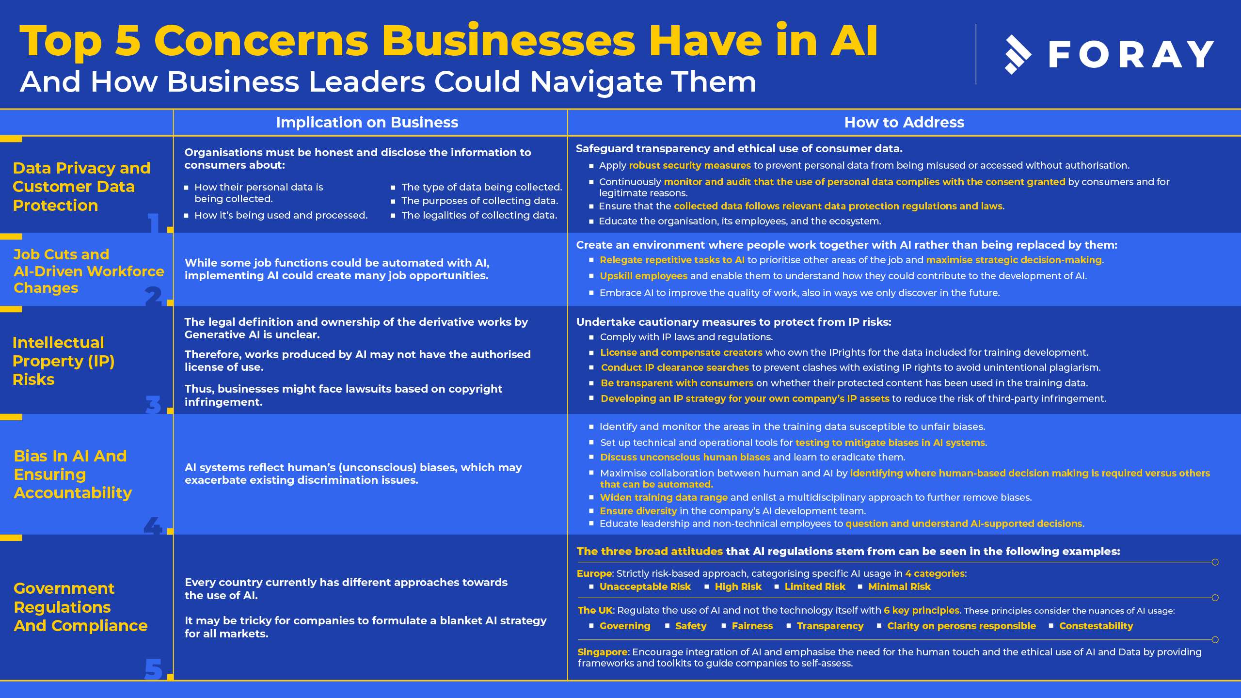 Despite these risks, the benefits of implementing AI into your business can easily counteract the issues that it brings. So long as the pitfalls are adequately addressed with the right plans for early prevention. Below is a guide sheet on how business leaders could successfully navigate these issues.